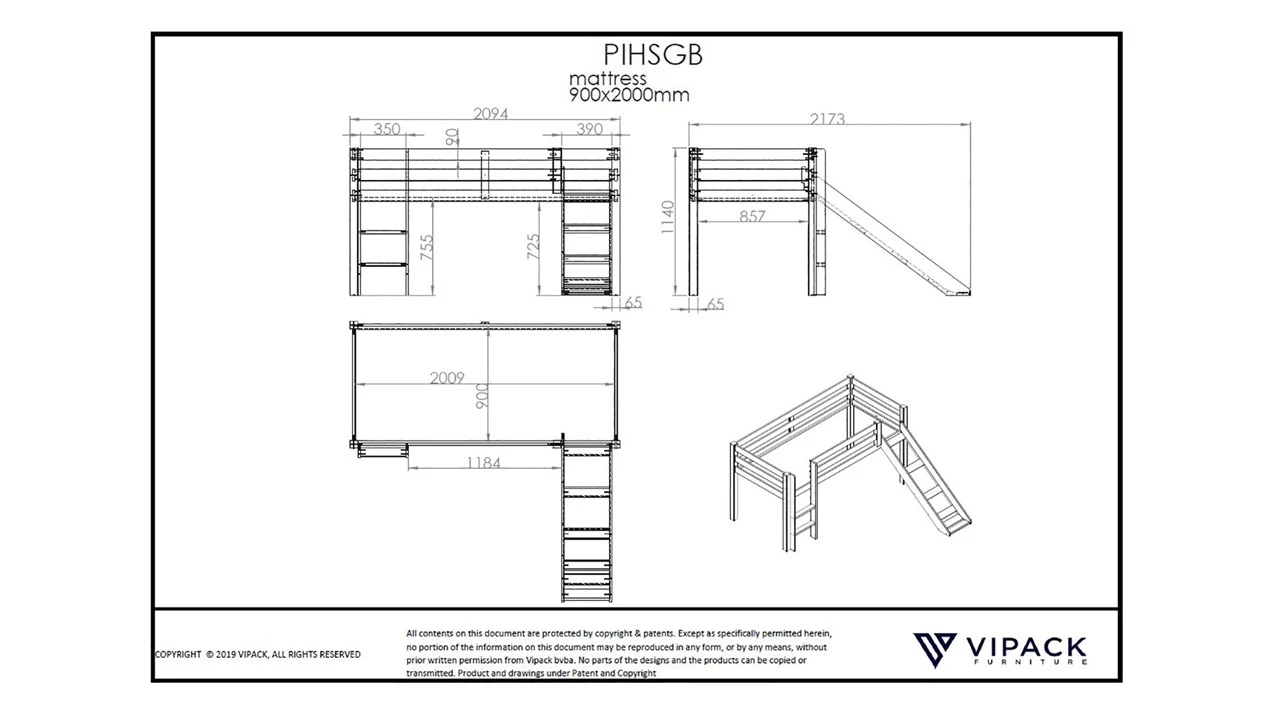 Hoogslaper Pino met glijbaan wordt geleverd inclusief bedbodem, exclusief matras.