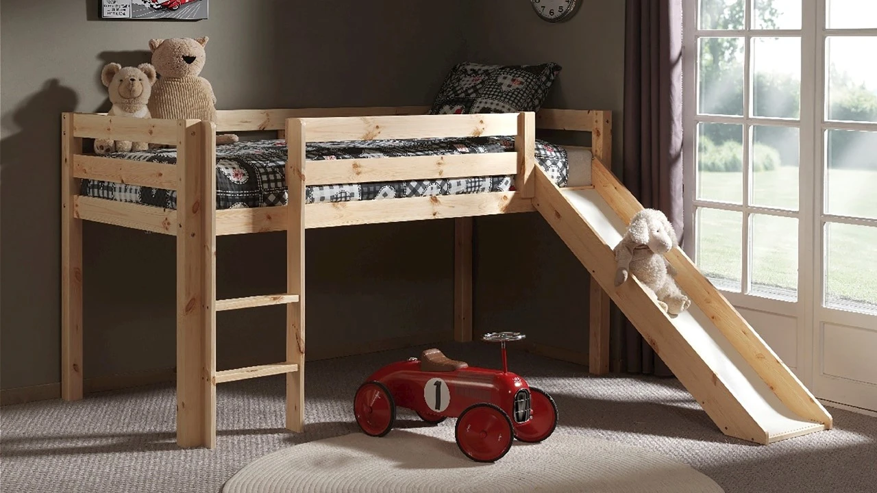 Met de Hoogslaper Pino met glijbaan haal je het meeste uit je kinderbed. Naast een slaapplaats maak je van het bed ook nog een waar speeltoestel met ladder en glijbaan. Zo is naar bed gaan én weer opstaan altijd een feestje.