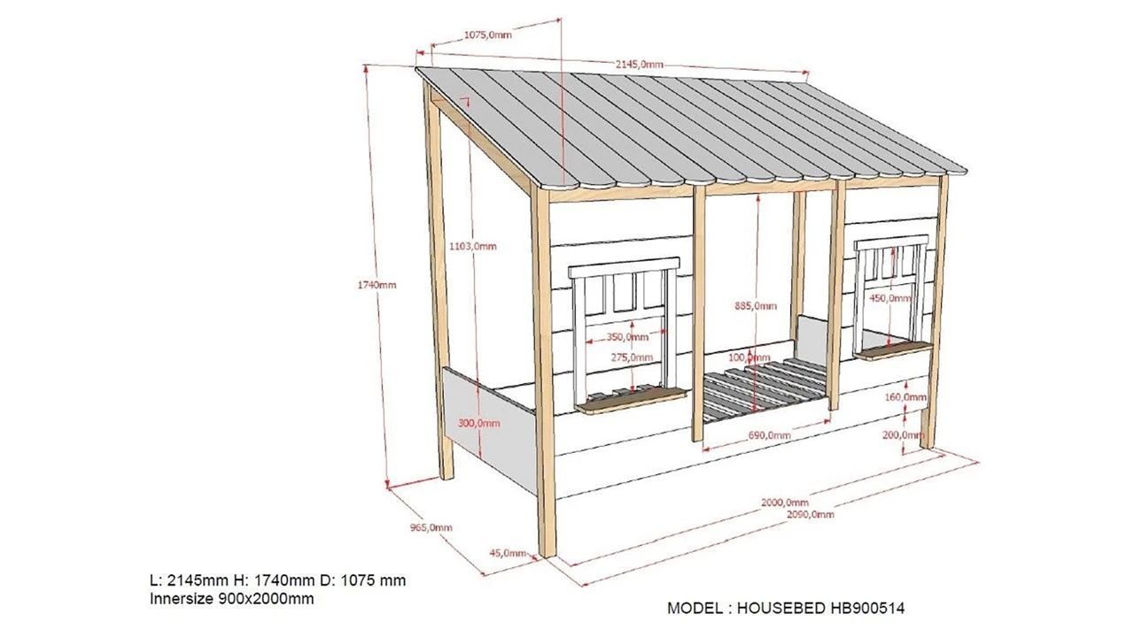 HuisBed 05 wordt geleverd inclusief bedbodem, exclusief matras.