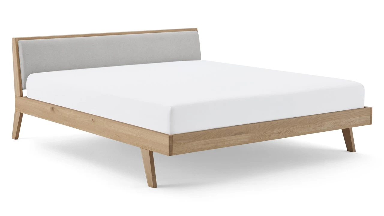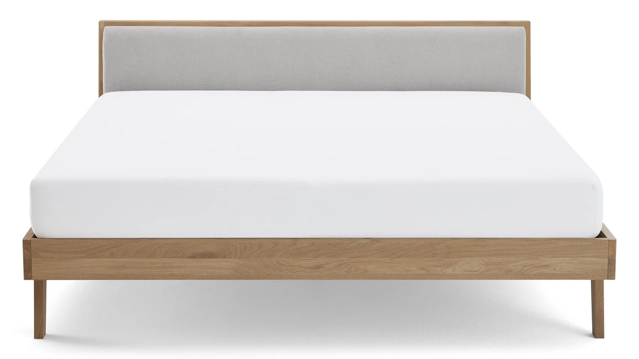 - Massief eikenhouten frame met gestoffeerd hoofdbord