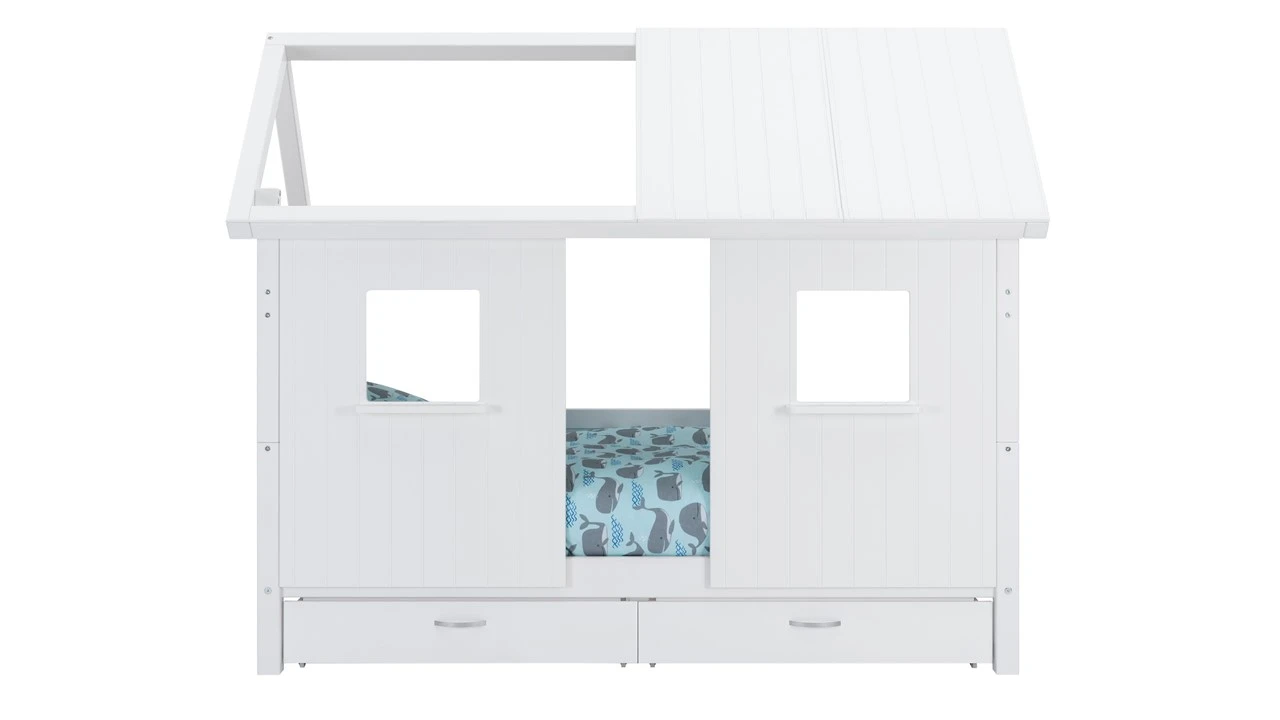 Het is toch altijd lekkerder slapen met een (half) dak boven je hoofd toch? Sofabed Puck met dakframe en half dak is een prachtig bed dat in geen enkele kinderkamer misstaat. Dit ‘slaaphuisje’ heeft sofabed Puck als basis. Het bed kenmerkt zich door de rustige uitstraling en subtiele groeven in de panelen. Met dit bed kan je kind én heerlijk slapen én kan het ideaal gebruikt worden om mee te spelen.